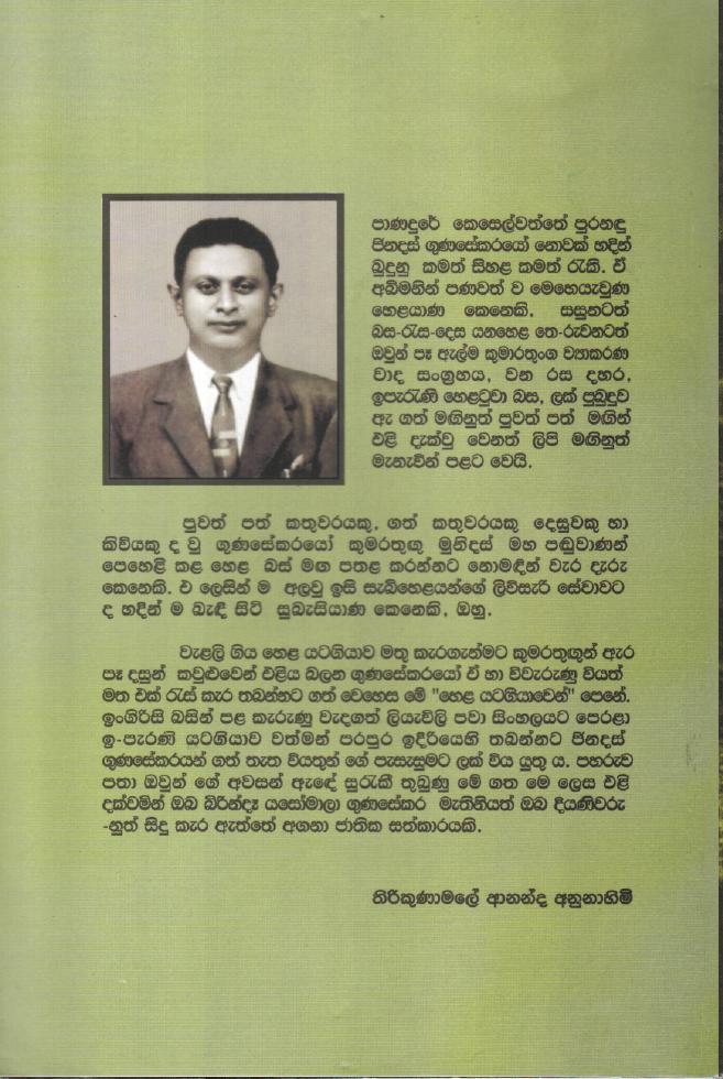 Sri Lanka and was an author of many sinhala books. In the following pages, we are lsting FOUR books by Gunasekera Ginadasun.